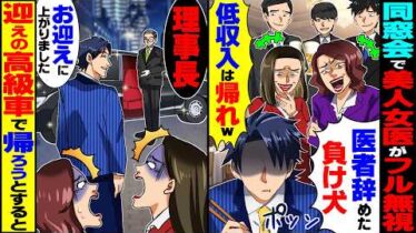 【仰天】訳あって医者を辞めた俺を同窓会でフル無視する美人女医達「低収入は帰れw」→仕方なく迎えの高級車で帰ろうとすると…