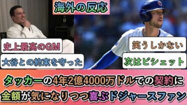 海外【マジかよ】タッカーの4年2億4000万ドルでの契約に 金額が気になりつつ喜ぶドジャースファン