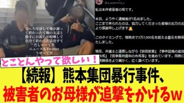 時事【衝撃】熊本暴行事件、被害者のお母様が追撃をかけるw
