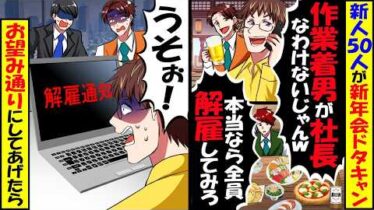 アニメ・漫画【動画】新人50人が新年会を全員ドタキャン「作業着男が社長なわけない!」→本当に社長の俺がお望み通り全員解雇してあげるとw