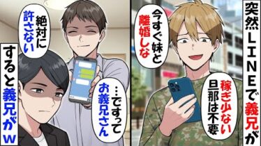 アニメ・漫画【動画】俺の事が嫌いな義兄からLINE「さっさと妹と離婚しろ」→俺「お義兄さんなら目の前にいるけど…あんた誰?」結果w