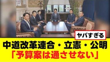 政治【衝撃】中道改革連合・立憲民主・公明「予算案は通させない」