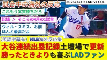 海外【驚愕】大谷9回2死から土壇場で記録更新!!負けた悔しさなど吹き飛び記録継続を祝うドジャースファン反応集w