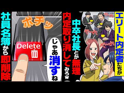 【驚愕】エリート内定者集団「中卒社長の下とか無理w内定取消してみろよw」→お望み通り社員名簿から即削除した結果w