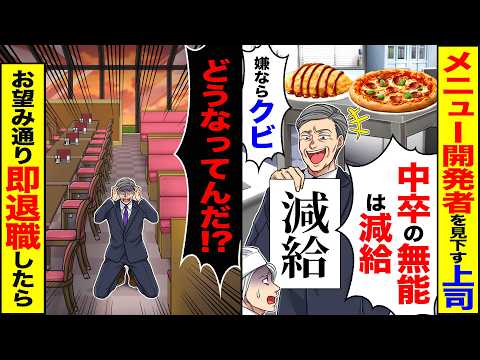 【仰天】メニュー開発者を見下す上司「中卒の無能は減給w嫌なら解雇」→「どうなってんだ!?」お望み通り即退職したら