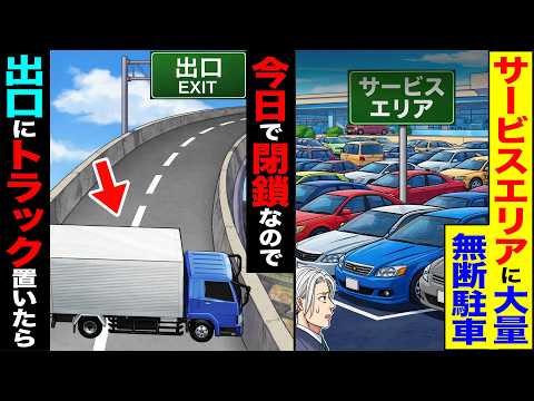 【驚愕】サービスエリアに大量の無断駐車→今日で閉鎖なので出口にトラック置いたら