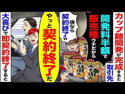【マジかよ】3年かけたカップ麺開発が完成した途端取引先「開発料半額でw販売権ウチにあるから」→「やっと契約終了だ」大喜びで即契約終了すると