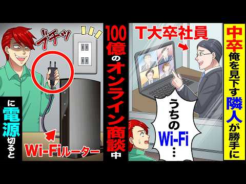【仰天】中卒の俺を見下すT大卒社員隣人が勝手に「うちのWi Fi…」→オンラインで100億の商談中に電源を切った結果