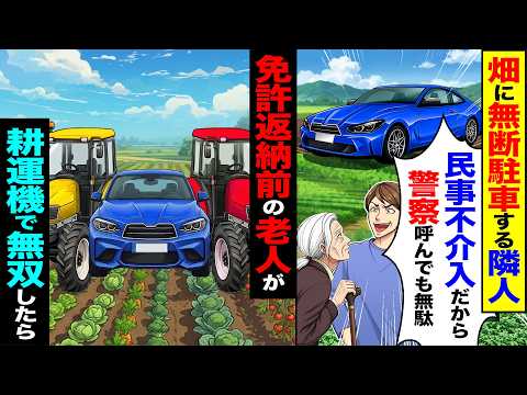 【動画】畑に無断駐車する隣人「民事不介入だからw警察呼んでも無駄だ」→免許返納前の老人が耕運機で無双し1年間海外旅行へ