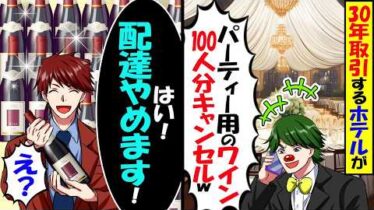 アニメ・漫画【動画】30年取引するホテルが「パーティー用のワイン100人分キャンセル」→俺「配達やめます!」