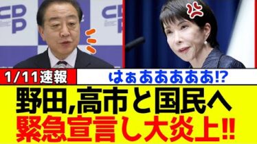 政治【衝撃】野田代表、高市首相と全国民へ“緊急宣言”し大炎上!!
