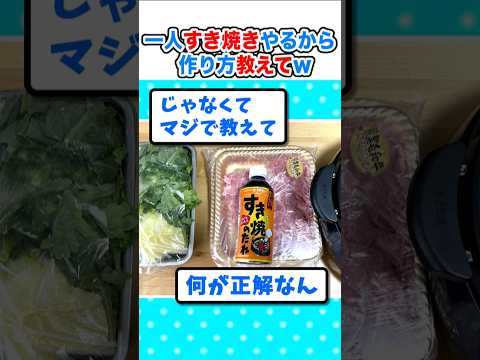 【驚愕】初めて一人すき焼きやるから作り方教えて下さいw