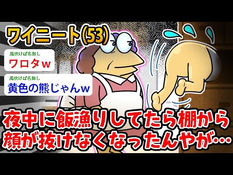 【マジかよ】ワイニート(53)夜中に飯漁りしてたら 棚から顔が抜けなくなった