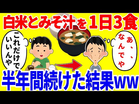 【仰天】お米とみそ汁だけを1日3食食べ続ける生活を半年間続けた結果がやばいww
