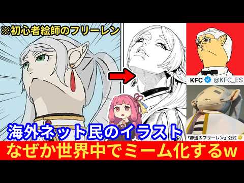 【マジかよ】外国人さん「Xでフリーレンのイラストが大量発生しているぞ!」→初心者絵師が描いたフリーレンが世界中ミーム化するww
