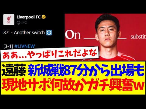 【動画】遠藤航、ニューカッスル戦87分から出場も、なぜか大興奮してしまう現地リヴァプールサポの反応がこちらですwwww