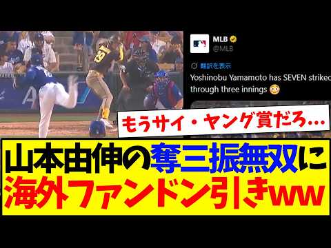 【衝撃】山本由伸の奪三振無双を見てしまい、ドン引きする海外MLBファンの反応がこちらですwww