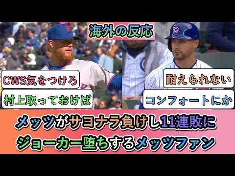 【衝撃】メッツがサヨナラ負けし11連敗に。ジョーカー堕ちするメッツファン