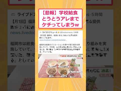【動画】学校給食とうとうアレまでケチってしまうwww ネタ 新着の記事 Twitter Facebook はてブ Pocket LINE コピー 2026.04.27PR 急上昇 【驚愕】出前にケチばかりつける婆さん→店主が怒って「注文は受けない」と言ったら… 【マジかよ】人気女性YouTuber、人生初の開示→粘着アンチは「友達」だった… 【驚愕】私「見た目で判断しよって!まっ、いいけどね!」→毎回大盛りが自分のところに来てたのに初めての店で女の子扱いされて… 【マジかよ】ブラックなコンビニのバイト店員資質クイズを出すで 関連の新着 【動画】人生の半分以上を児童養護施設で生きた私が、施設の実情について語ってく 【マジかよ】汚嫁「パパが寝たきりになったから仕事辞めて実家に戻るね。離婚しよう」→「お義父さん今海で波乗りまくってるよ?」と伝えた結果w 【マジかよ】1億円もらえるけど「じゃじゅじょ」を言ったら爆発するボタン 【驚愕】この子を萌える画像に改造してくれ→加工職人が全力で遊びまくっててワロタ 【動画】学校給食とうとうアレまでケチってしまうwww引用元:https://youtu.be/Ggo0v_MhKxg あとで読む 1: ひえコペ 2026/04/27(月) 09:11:05続き 12