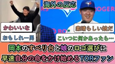 海外【衝撃】岡本和真のすべり台と娘のロゴ選びに、早速自分の命をかけ始めるブルージェイズファン