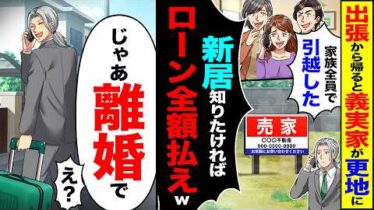アニメ・漫画【衝撃】出張から帰ると義実家が更地に「家族全員で引越したw新居知りたければローン全額払えw」→「じゃあ離婚で」「え?」