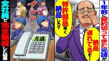 アニメ・漫画【仰天】1年前に「底辺工場とは契約解除w」と切ってきた元請けが「おい納品遅れてるぞ〜。特許部品早く納品しろ」→全社員で完全無視した結果